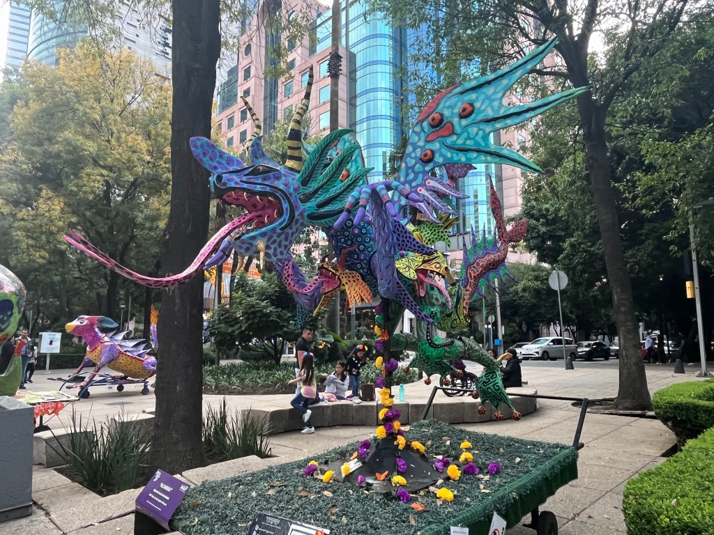 Here are a few of the alebrijes on display on Paseo de la Reforma after the pararde. There must have been nearly 100 of them lining the street on both sides.