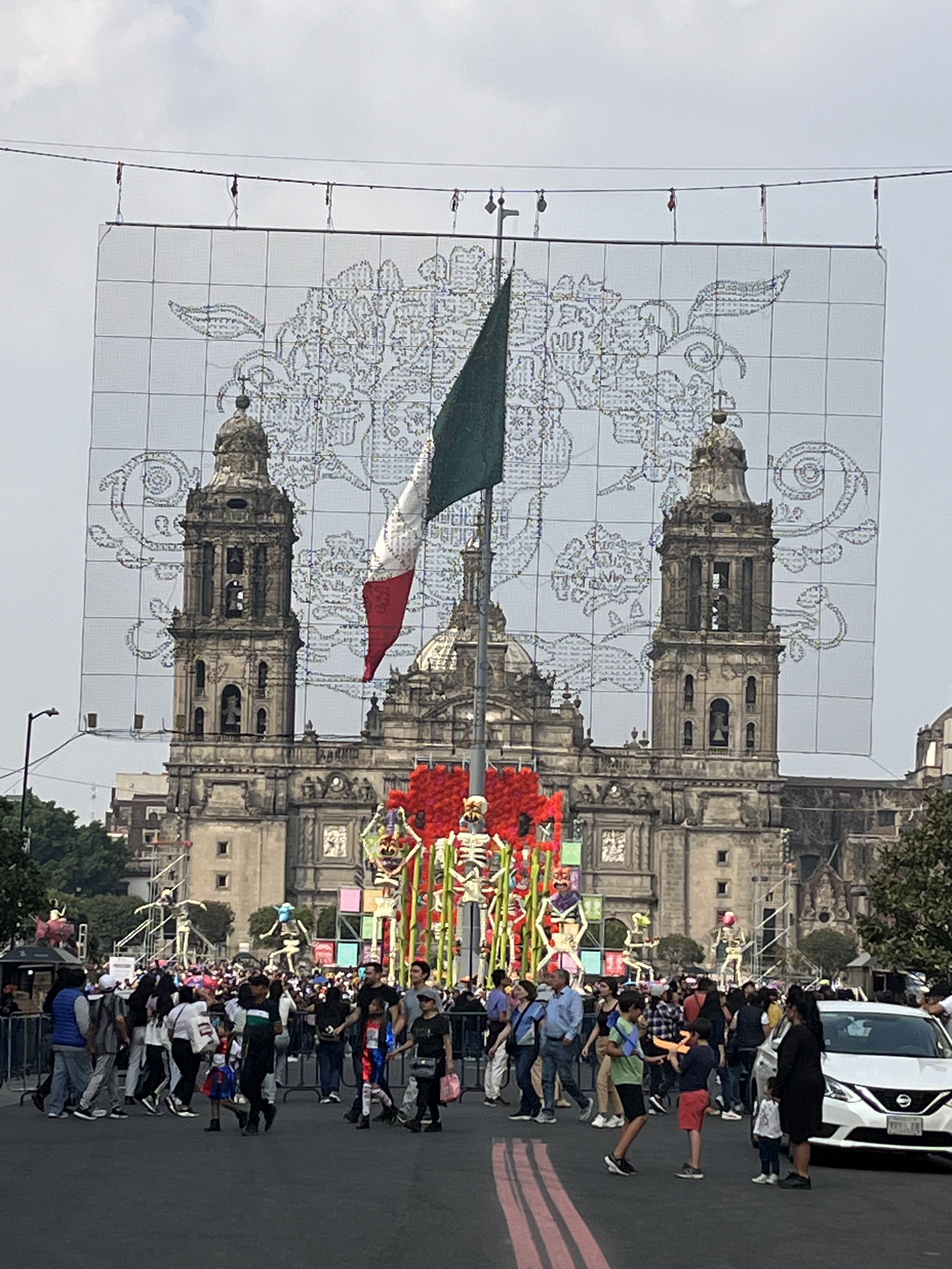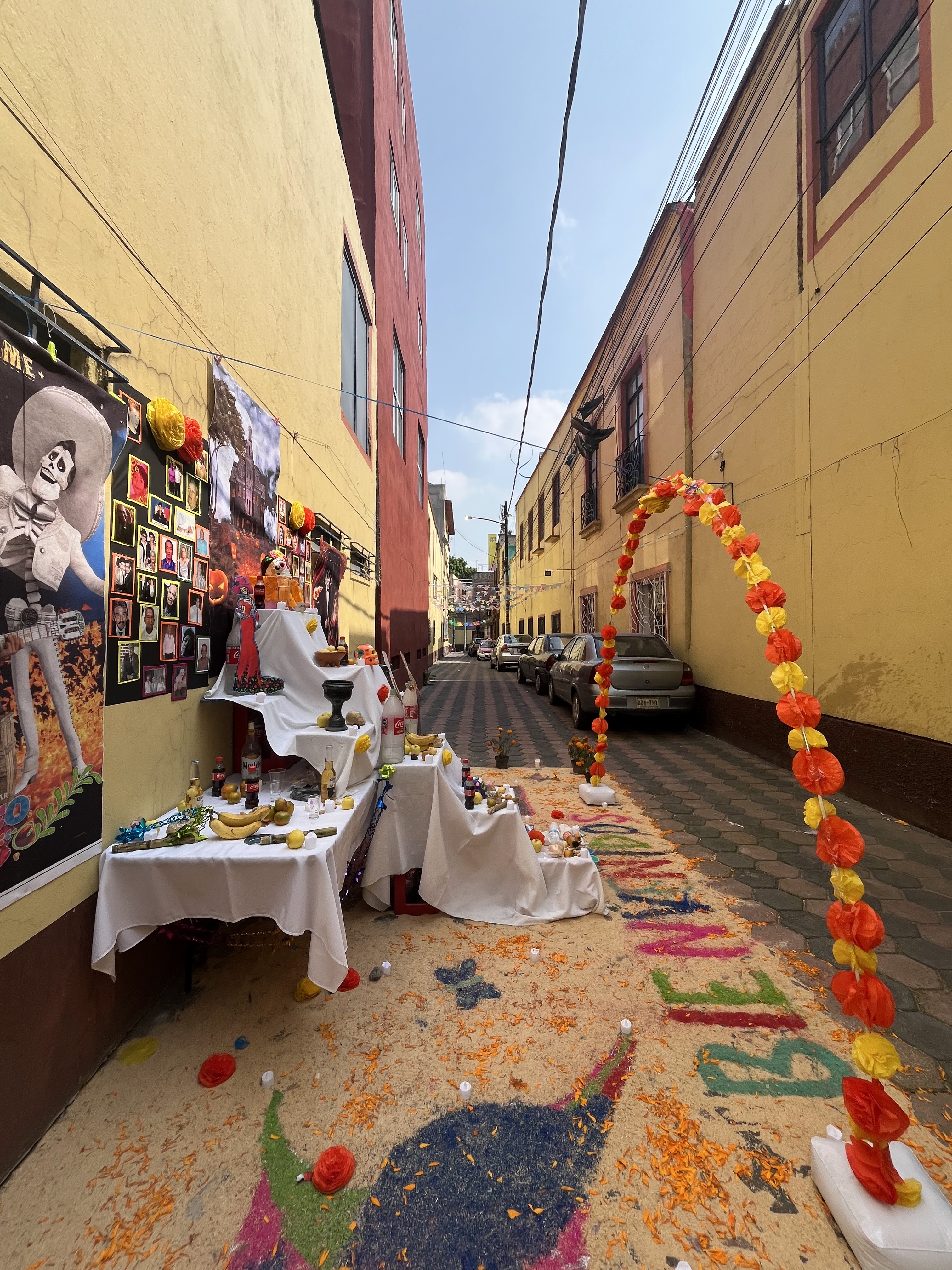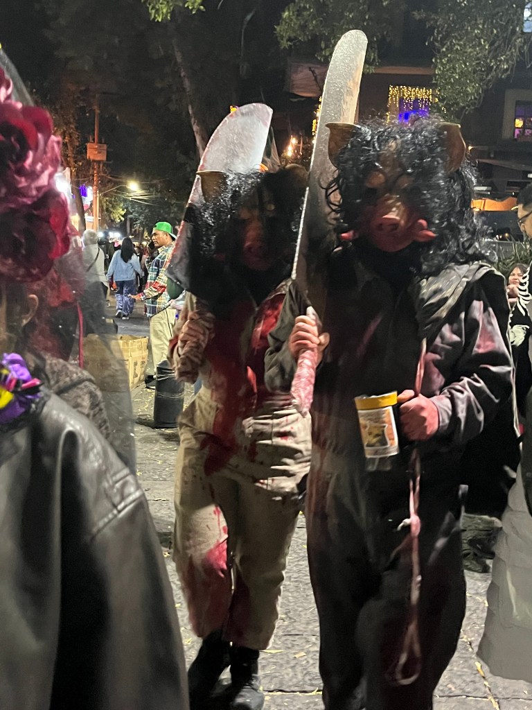 However the Zócalo has always offered some festivities and an Ofrenda for the holiday. Picture on the right is looking up Avenida 20 de Noviembre to Plaza de la Constitución, you can see the Mega Ofrenda (seriously what it’s called) with the National Cathedral in the background. It’s definitely a scene more geared toward families, the air was filled with particles of pink and blue cotton candy wafting off machines. Not gonna lie, floating cotton candy is now up there on my worst nightmares list. It’s like a stickier spiderweb.