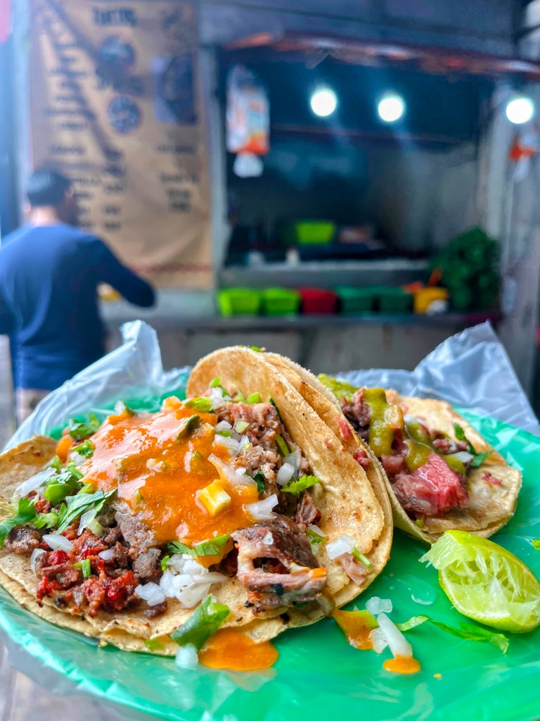 Tacos: From the stand on Merida by the parking lot. Tacos campechano (longaniza and bistec) & I think, suadero. I asked for his favorite and since tripe and head were also on the menu, I wussed out about asking what I was eating. But there’s always a line. All in all, not my favs. I found the bistec a little chewy and I’m reasonably confident my second taco was a suadero which is often just a bit fatty for my taste.