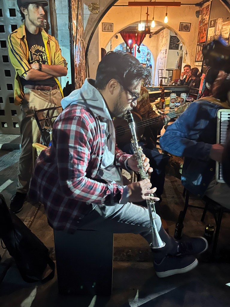 Uriel, from instagram & above playing clarinet, chatted with Fran and I and then realized that we’d been messaging and so he introduced us to a bunch of the folks there and let us know that this was their 88th Tuesday jam session. It was so warm and full of creativity and life. I felt a little like maybe I found my tribe. They played jazz standards, like Don’t Mean A Thing, If It Ain’t Got that Swing, riffed into gypsy jazz and jazz with a distinctly Mexican flavor. Here’s a taste: