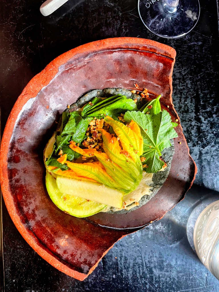 In adventurous in eating news: Fran and I finally braved the wait at Expendio de Maiz sin Nombre, a non restaurant project that does not accept reservations, where Jesus serves you elevated memories of his childhood in Guerrero. This tiny project with 5 tables & a michelin nod, features no menu, you are asked if you have any allergies, you are asked if you want a beverage, you answer alcoholic or non alcoholic. Like most restaurants here with an emphasis on farm to table and traditional plates, it is a corn heavy feast. You are simply served and when you’ve had enough, you stop and are gently peer pressured into dessert. There’s a rhythm and Jesus announces what you are about to eat and the story with it to the whole of the restaurant. I couldn’t make it past plate #4, which I’m a little sad about because 5 was a rendition of molletes. The food changes very frequently. A woman who had also been earlier in the week told us it was a very different menu.