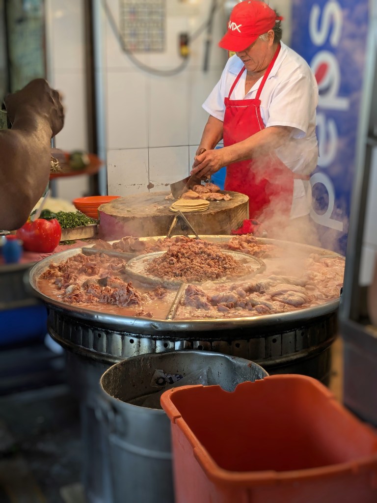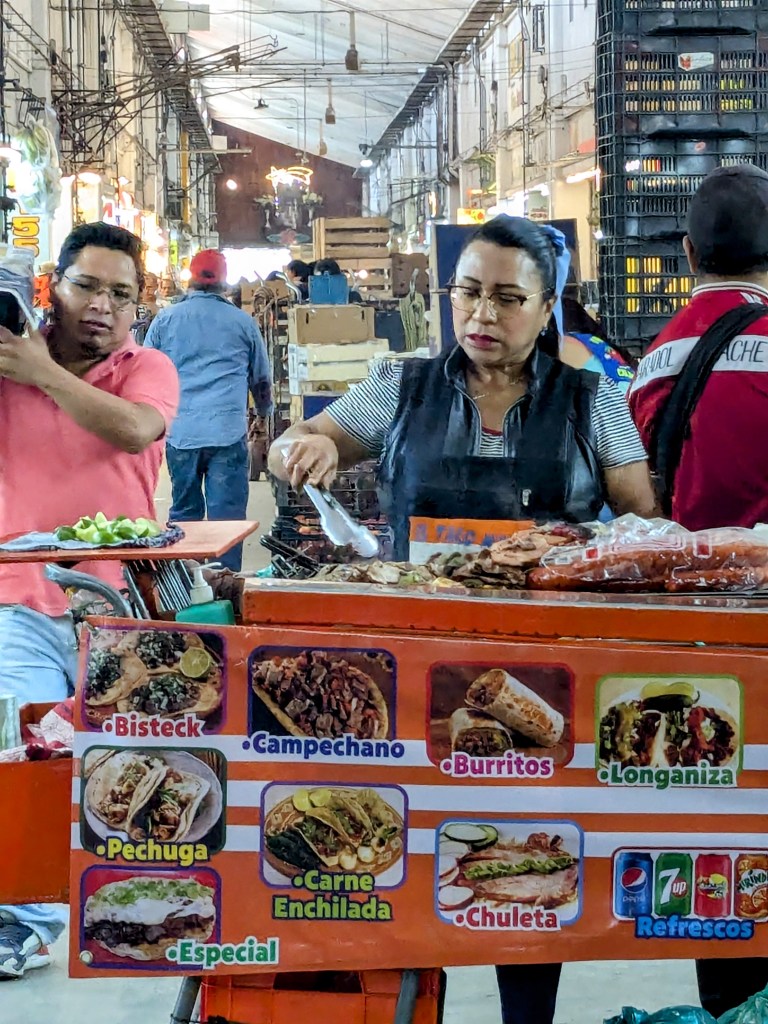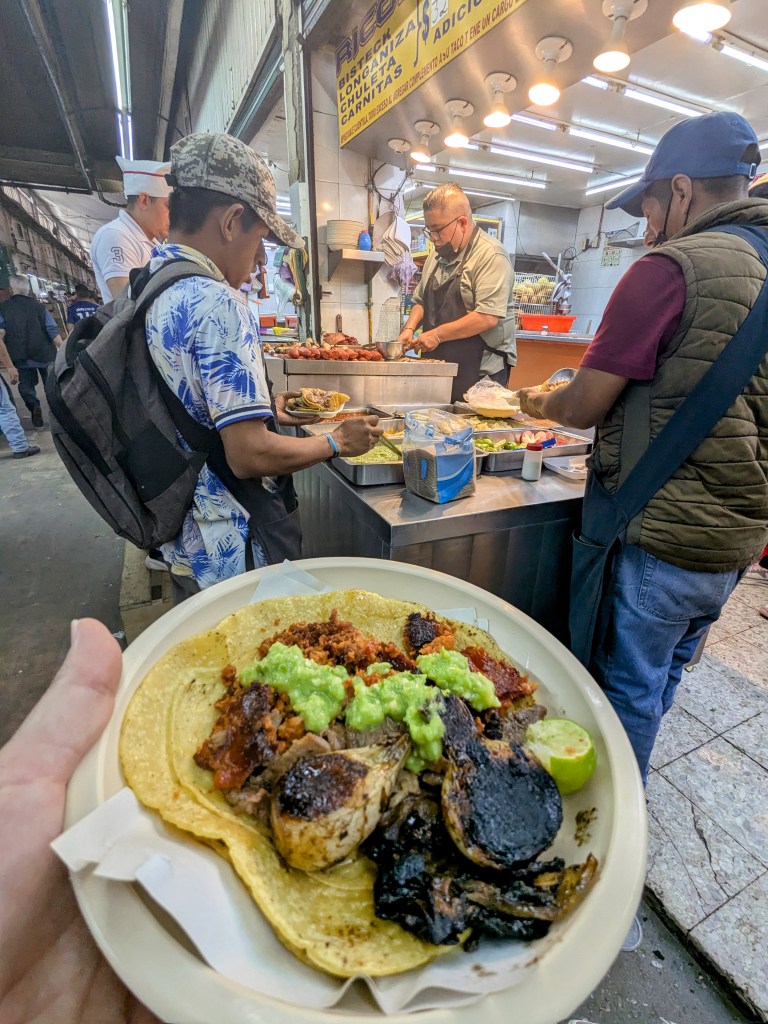 The sign said Ricos Tacos. What could go wrong. This was a lovely human in the Central de Abasto who very kindly recommened a campechano taco, let me do things all out of order, asked about where I was from, advised me on where to buy tomatoes.