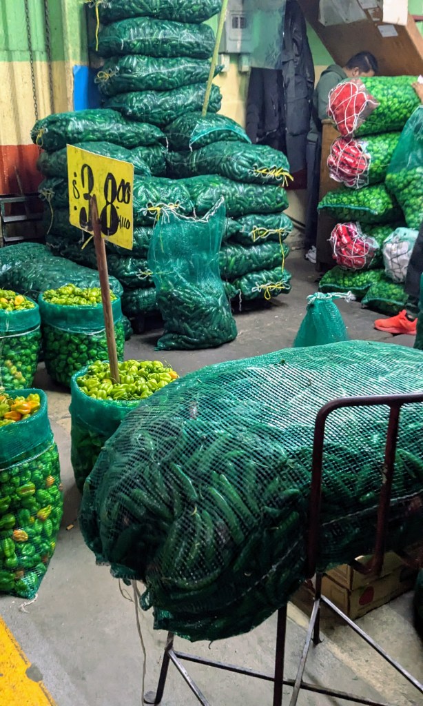 Things I don’t know: if there is a map somewhere. if there is a part that is more friendly to non wholesale customers. Most products were sold by the box or bag, not even by the kilo. Upon asking a tomatillo vendor if I could buy a kilo, he kindly shook his head and explained, caja only. Apparently visibly crestfallen, I explained that was a bit too much for just me and was then instructed to open my bag and 20 tomatillos were deposited within it, free of charge.