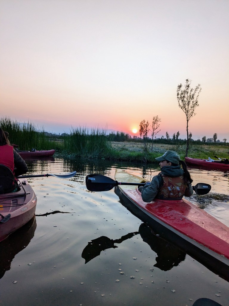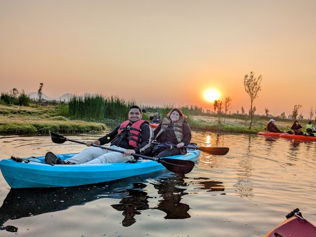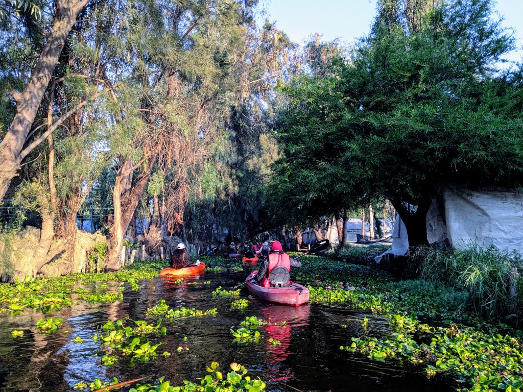 Since the canals are built on an ancient shallow lake, it’s remarkably easy kayaking with the gentlest of currents. The dark began to lift as we kayaked through farmland to the spot for the sunrise. Shortly after sunrise we received a relatively short, but felt pretty long, lecture on Xochimilco in Spanish, while in kayaks. So the thing about my Spanish, I struggle real hard with 5+ minutes of talk without interactions. My brain is trying to hard to keep up, but it really can’t. But the setting was lovely.