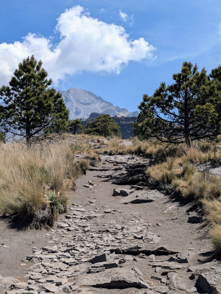 The first thing I’ve learned about hiking in Mexico is that I’m real interested in knowing the altitude. In the Northwest, it’s all elevation gain over distance, but here there’s an additional, rather critical, metric at play. And there’s the additional challenge of I don’t yet fully know what it means for me. This hike was supposed to be 8.7 miles going from 11,811ft to 12,795ft, from the general visitor’s center to La Joya where you start your summit. That was the description. In case you aren’t familiar with me waxing poetic of Iztaccihuatl, this is my mecca. She calls me. I want to get to Refugio Cien before Machu Picchu and I wanna summit before heading to Kilimanjaro. She’s the sleeping lady, the third highest mountain in Mexico, she’s a non technical summit, although about 12-15 hour hike that starts at midnight an goes to over 17,000 ft. And she’s stunning.