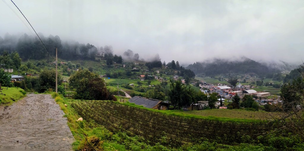 This weekend resembled Oregon. Grey skies and cloudy. A bit more mist factor outside of the city. We stayed in a “resort” of sorts at the edge of the village. 2km of unpaved, bumpy and narrow road past the main village. Power is solar only, there is no heat, water is from a nearby spring. There is no cell reception. But you’re surrounded by lush green pine forests, an expanse of grass and a flowing creek that apparently houses some trout.