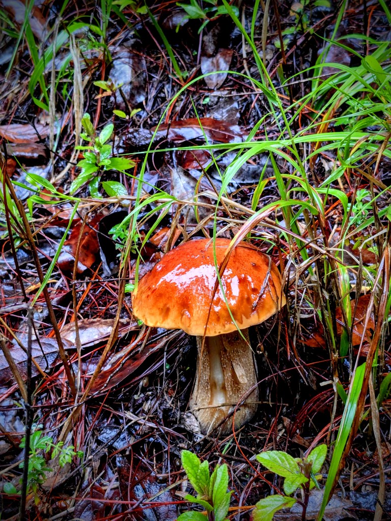 The way back down was both quicker and cheerier with downhill energy and significantly more light. We noticed flowers, mushrooms and plants that we hadn’t before. Moni broke off a branch of one small tree/large shrub that smelled overwhelmingly like marijuana and advised that we put a stalk behind our ear to combat altitude sickness and firmly instructed us not to eat it. Further down the trail she gathered branches of a wild mint. Later she cut a stalk from a plant, stripped it over its leaves and handed it over for us to take a bite. The smell resembled celery, the stalk was thin walled and hollow inside with a pleasant crunch. By the time we approached the cabin, her arms were filled with plants.