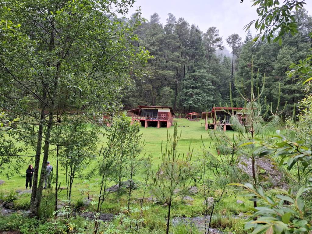 We arrived early afternoon to our cabin, unloaded and explored the grounds for a bit before lunch, mostly a large open space with thick vibrantly green grass, a few boulders bordering a creek. The site has two window filled cabins that sleep 10 each dormitory style and a large central area which hosts a dining room, a covered outdoor kitchen with a wood fired stove, oven and comal. Steps from the kitchen lead down to a level of bar style seating and then finally to a large, covered stone patio with a firepit, connected to the left is a cabin built for two. Pine trees rise up on the hill in front of the buildings as well as the one extending behind them. Brilliantly red millipedes milled underfoot and were especially plentiful on the rocks. A light mist coated us and wispy clouds played through the mini peaks and valleys, ducking in and out of the trees branches.