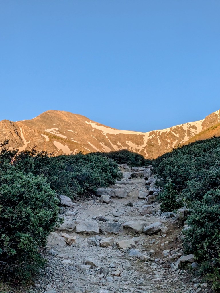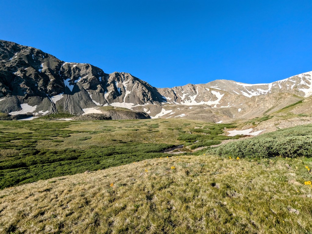 I almost immediately fell over slipping on a tiny bit of ice covering a wooden plank bordering the path, but fortunately was unscathed and that was only spill of the day. The trail starts around 11,000ft and Grays Peak sits at just about 14,270. So it was kinda up. The lower section is a gentler up with just amazing views, green hillsides, and rocky terrain that were pika heaven. And now I’m just gonna give you a massive photo dump.