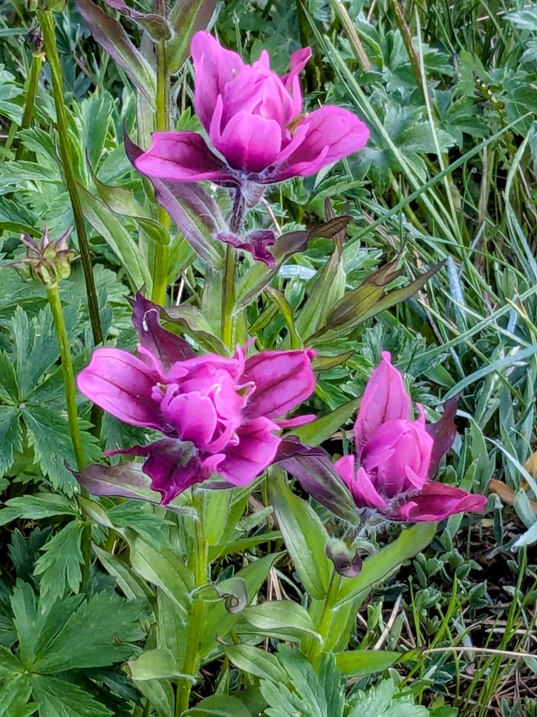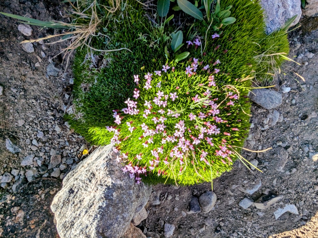 Turns out both Jenny and I are slow hikers, so we were well suited. The trail starts on an incline and kinda just keeps going on an incline. It’s a popular hike, so the trail is both extremely well worn and there were lots of folks out early Sunday. We’d gone rounds considering whether it being a holiday weekend would make it more or less popular and in the end, I still have no idea. It was an amazing array of people. Folks in their 20s with a water bottle and shorts cruised passed us, so did some older folks although they were generally more bundled. There were also a bunch of Asian folks in varying degrees of preparedness setting forth. And so many dogs, which felt a bit dicey as there were definitely sections where you needed to pay attention and it’s a leash required area. Wildflowers come late this high up and they were beginning to crop up for us.
