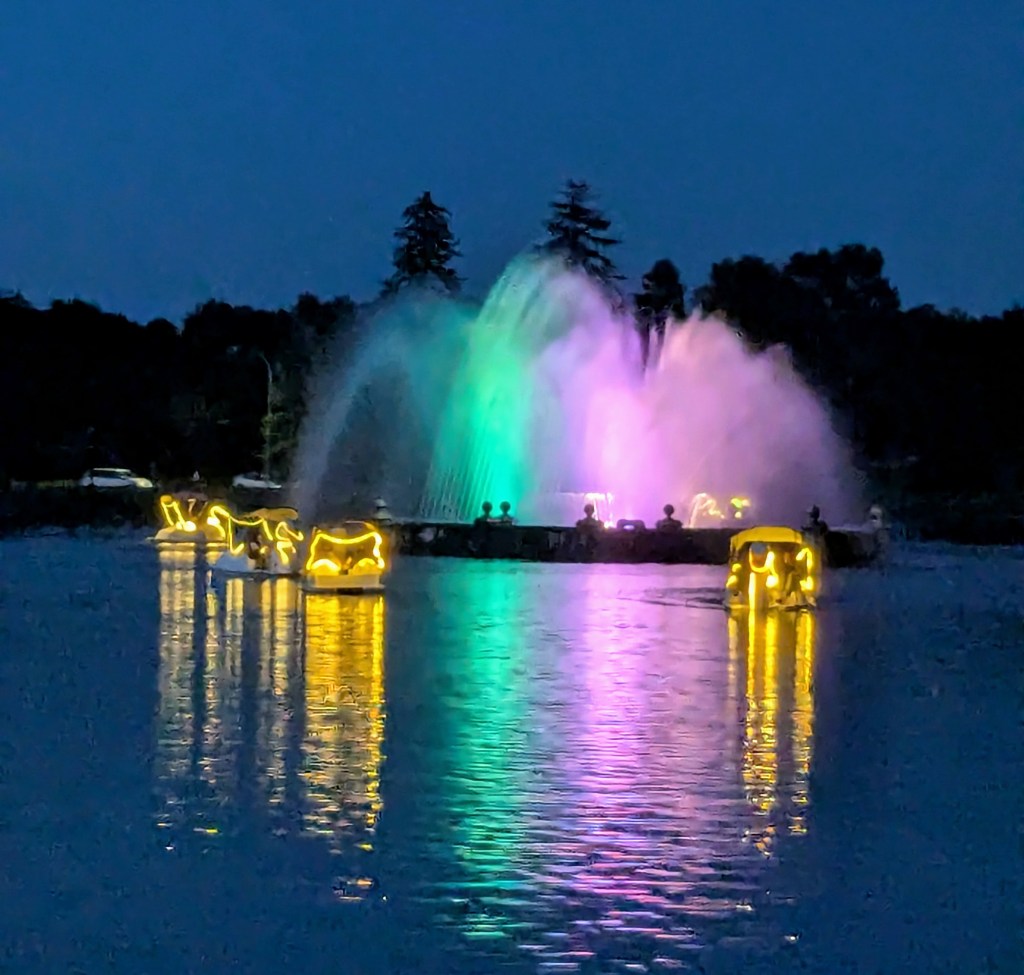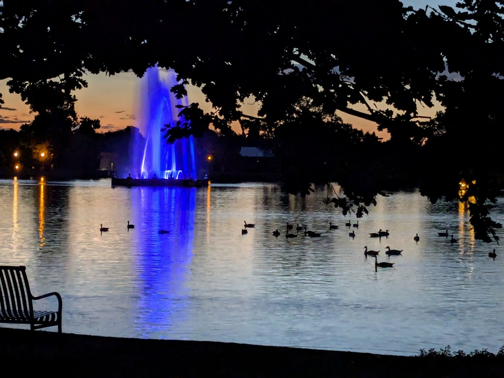 Jenny lives near City Park which is over 300 acres and includes the Zoo and the Museum of Nature & Science. It also has a big lake. At dusk, we took Fitz (Jenny’s enthusiastic black lab) for a walk. Swan boats with lights gathered around the fountain in the park and hundreds of geese slept by an island. It was a nice walk, stretching out still taut calves and the evenings, while cooler, remain quite comfy.