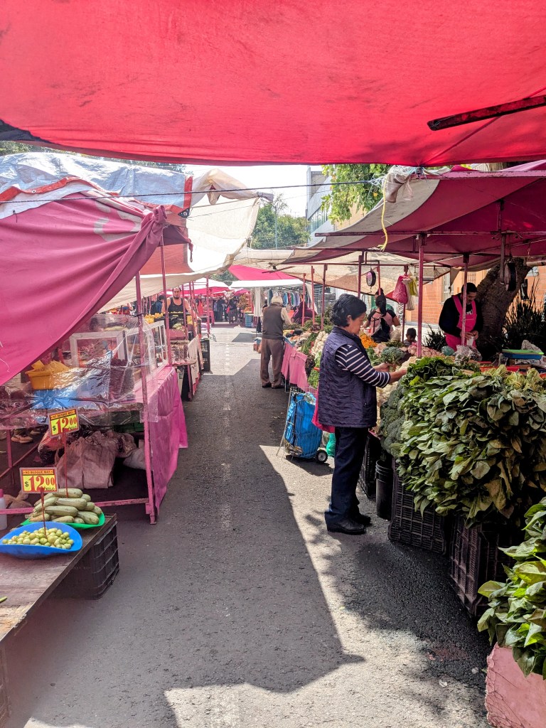 Sunday was Mercado Jamaica day. This is the flower market. I had not been before and was super excited for flowers! Sherry and I walked the roughly 3 miles from my place through a neighborhood called Doctores. Now, if you google it, you’ll probably get told not to go to this neighborhood and really there’s not a lot there. But it borders some very popular and fully gentrified neighborhoods, which means it’s slowly gentrifying. We walked through a fabulous looking tianguis market with a big variety of really good looking fruit and veg that was not terribly far from my house and continued on through the neighborhood which definitely fluctuated from more run down buildings to really charming ones with parks across the way.