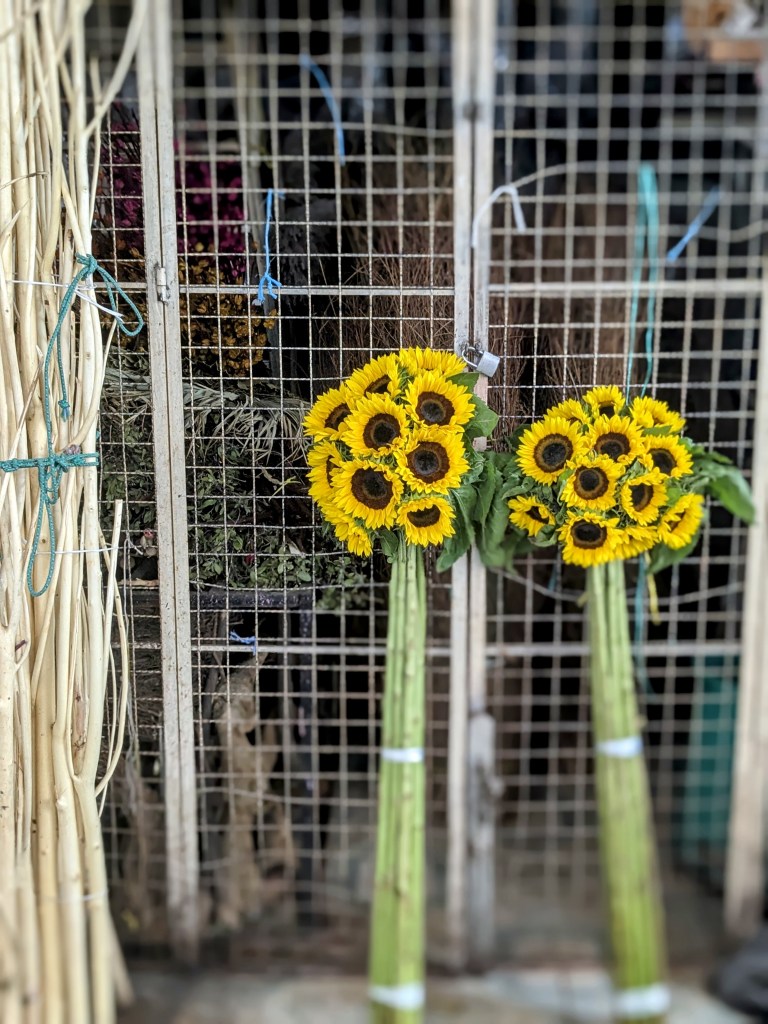 There were a few stands with dried flowers and they’re packed in tiny spaces. The floor area of a couple was maybe 5×7, generously, but dried flowers and grasses, some natural, some dyed, were easily stacked 10 ft high. Strings of amaranth dyed sharply white or intensely pink hung down. Some stands had massive arrangements of dried flowers, maybe 4×4, hanging from above.