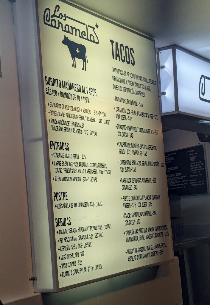 On Monday, Fran and I went to a taco place in her neighborhood that she’d had before. Los Caramelos is a stand that became a storefront. They feature a lot of northern style tacos. Pictured above are a chicharron (on left) and a barbacoa de res. These were juicy tasty freakin’ tacos. Chicharron is interesting, it can refer to large fried swaths of pork rind, it can be pork belly, or these rendition which was more like a pulled pork. I believe techincally it means cracklings, but the variation is huge and I haven’t found a way to tell what you’re about to get. The one exception being if guacamole comes with chicharron, it’s definitely the large friend swath. This taco place may become a staple, despite being in the Condesa neighborhood and a solid 35 minute walk. They were really good and deeply satisfying. I’ve wanted them at least 3 times this week.