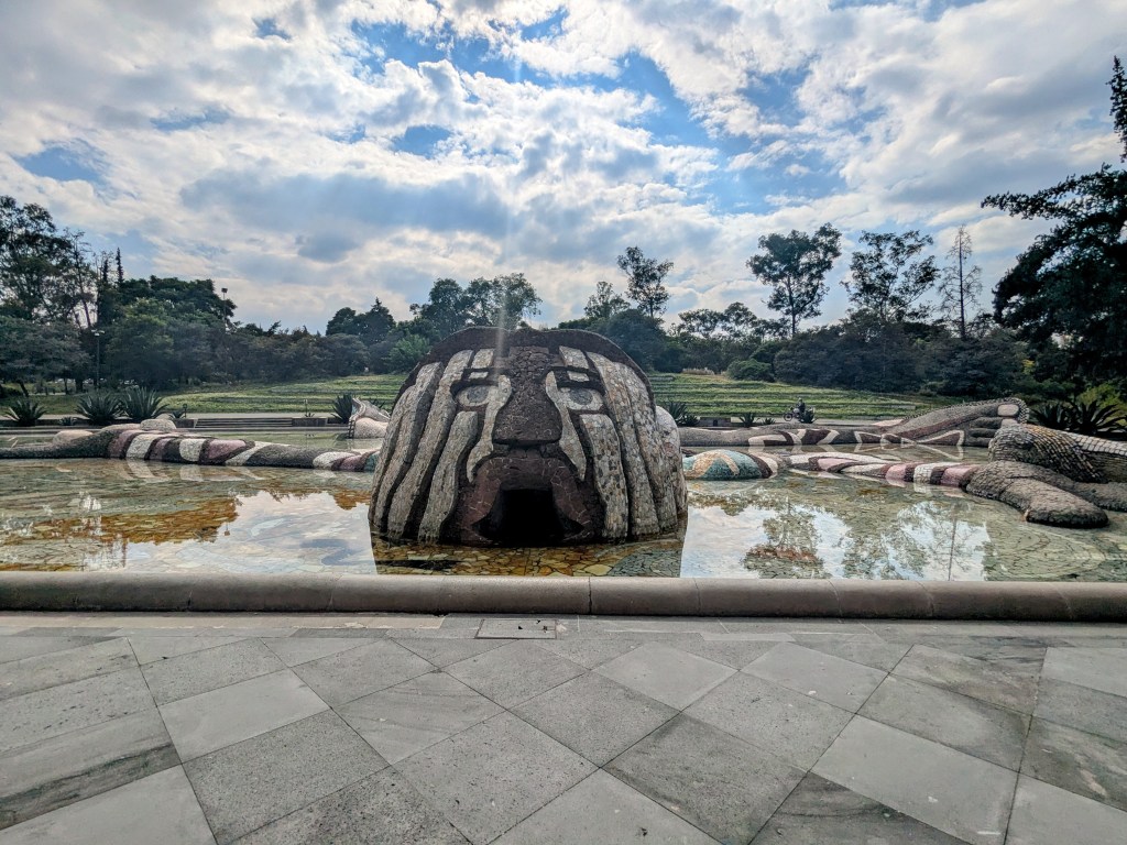 In front of the building lays Tlaloc, the Aztec god of rain. He was composed of ceramics and stone by Diego Rivera and features two faces.