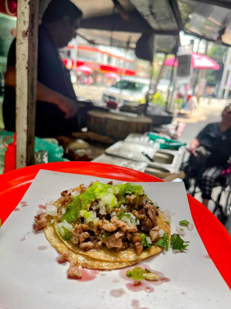 I’ve eyeballing this cart for a bit now cause it’s part of a near daily walk and is generally pretty crowded and it smells good! I was hoping for a campechano, but they were out and the gentleman recommended suadero, which this was either one of the best suadero’s I’ve had OR he actually said cerdo and I misunderstood. That said, a taco de cerdo is just super vague and I’ve never seen that anywhere and I’m actually mildly worried about what the hell I ate in that case, cause random pig is not usually a top of the line cut.