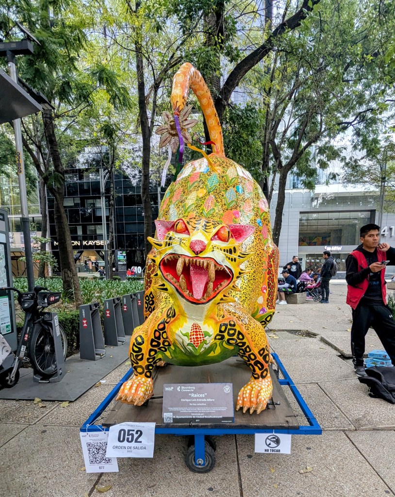After the parade, over 200 participating alebrijes are on display for about 3 weeks on either side of Avenida Reforma which is actually a much better opportunity to see them.
