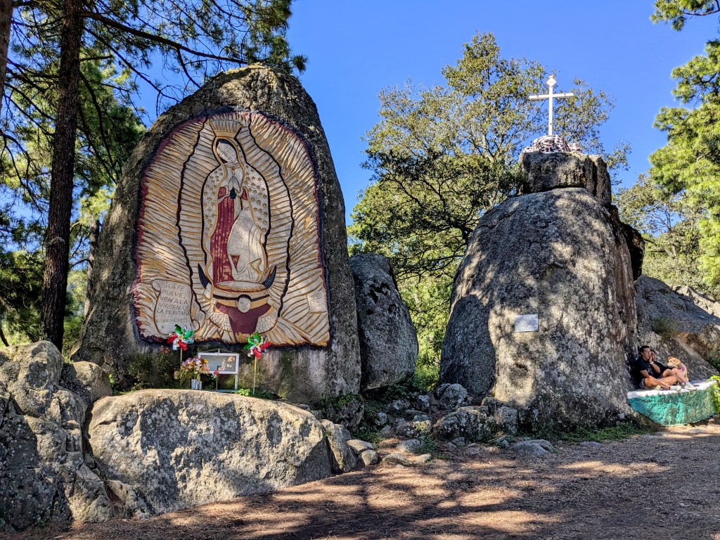 The elevation isn’t so high, only reaching maybe 11,000 ft, so the forest stayed with us the whole way through. We came upon the opening that houses the Virgen carved into a huge rock. There’s also a small tienda, a lookout tower that was unfortunately closed and some very pretty viewpoints of the city.