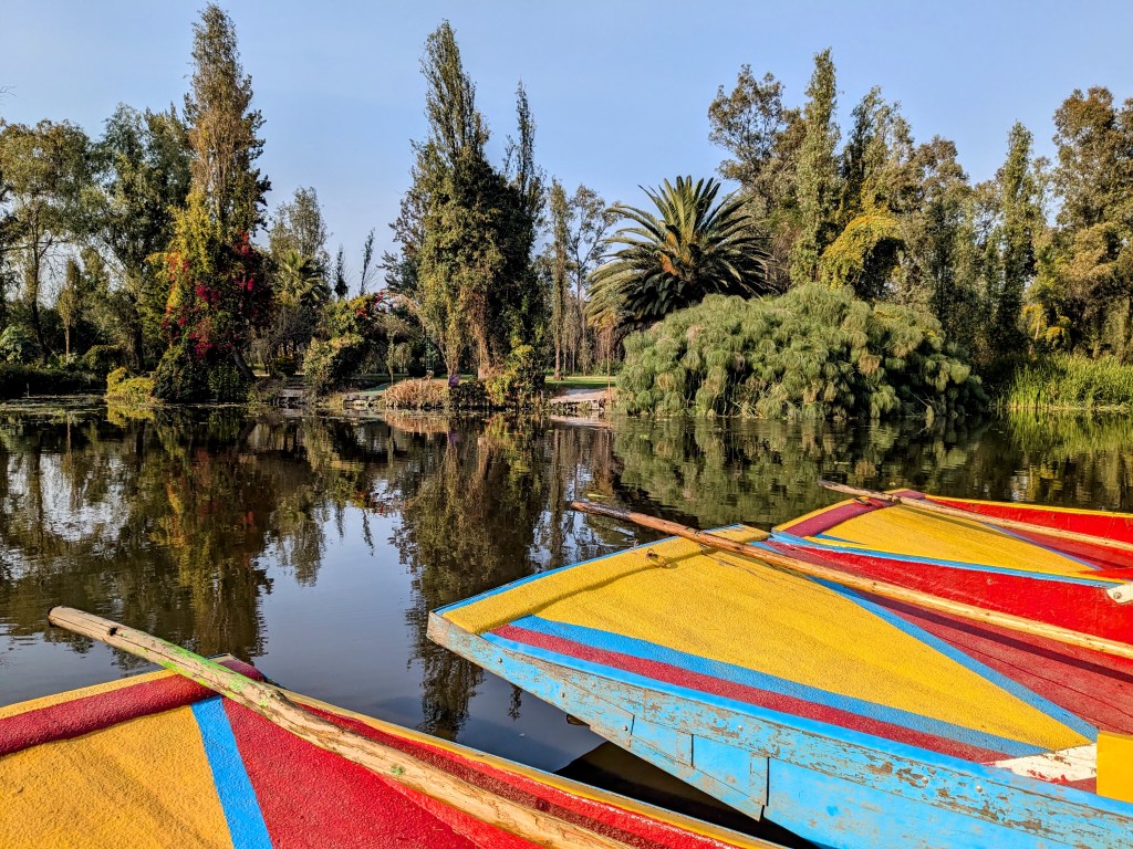 Monday was their last real day in town. In morning we wandered with Leo through Parque Mexico and stopped and grabbed a fancy mezcal for them to take home before heading down to the trajineras at Xochimilco.