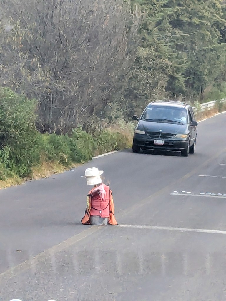 On the way back to the city we encountered a cone dressed up as a man, then a little further down the road, a man directly traffic for no apparent reason. There was no construction, hazard, or even intersection. Past him was another dressed up cone. Cars stopped and tipped him. And this another example of Mexican ingenuity in employment seeking. People do self proclaimed work that is simply not self proclaimable in the US. You do not get to decide to charge money for parking & car protection on particular blocks, you do not get to wash people’s windows while they are at a red light, one doesn’t see people wandering around with portable shoeshines, and you most definitely do not get to self direct traffic of your own accord.
