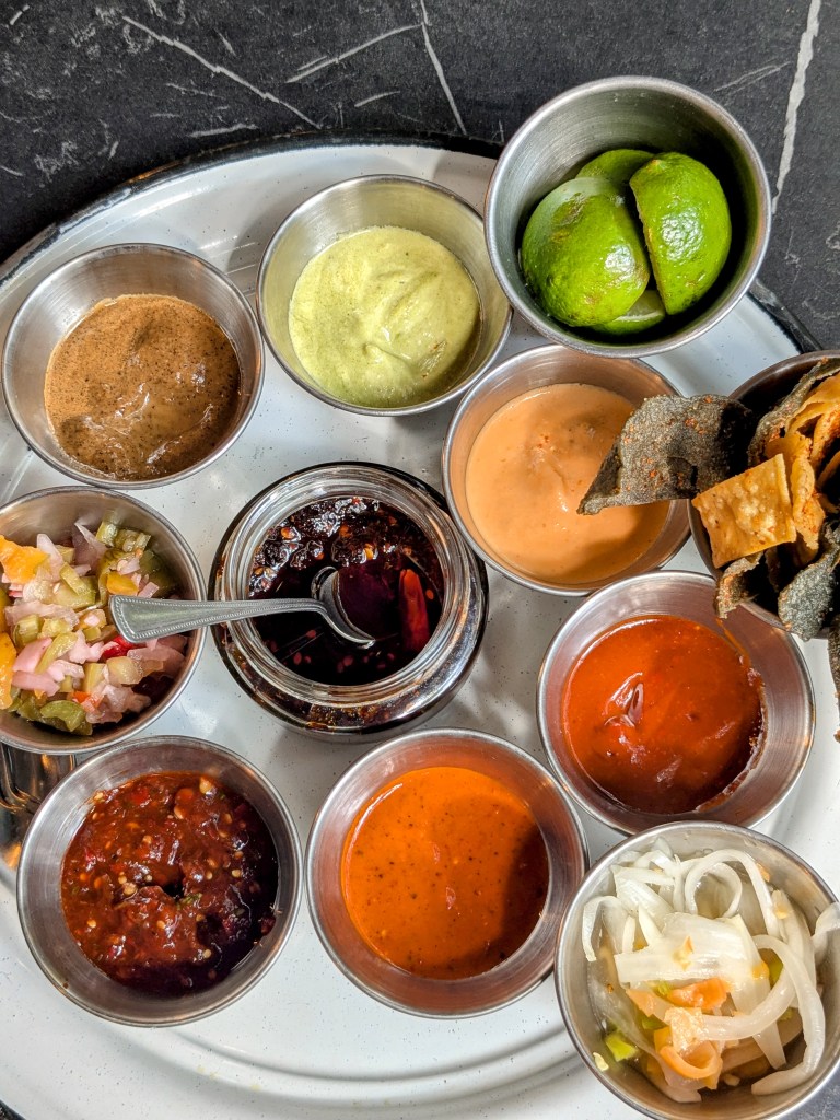 This is apparently a local chain. In general I love things done pastor style on the trompo. They get a nice crisp almost caramelizy edge. Here they had both a traditional pastor and sirloin on the trompo. My waiter was kinda rude and kept trying to get me to buy more. However, the waiter who had the tables behind me, was lovely and stopped to pet Leo. Apparently he has 3 small dogs and 7 cats.