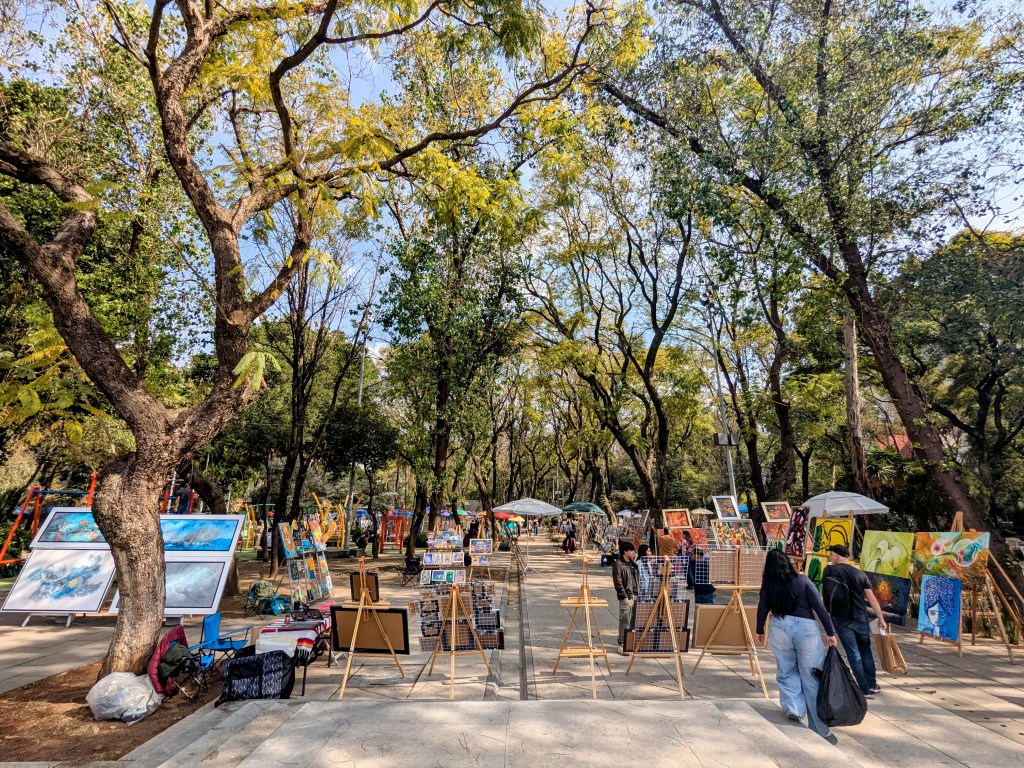 The weekend has been all about school work and then more school work. Today I took a break and Leo & I walked up to Jardin del Arte Parque Sullivan. Every weekend, numerous plazas through out the city feature art markets. This was a new one for me and only a little over a 20 minute walk from my house to the north through the Juarez neighborhood. It’s really one of my favorite neighborhoods in the city, definitely upscale, with big trees and gorgeous architecture and then it gives way to a vibrant and loud gay community. Apparently it also has a sizeable Korean population. And one of my favorite chocolate places.
