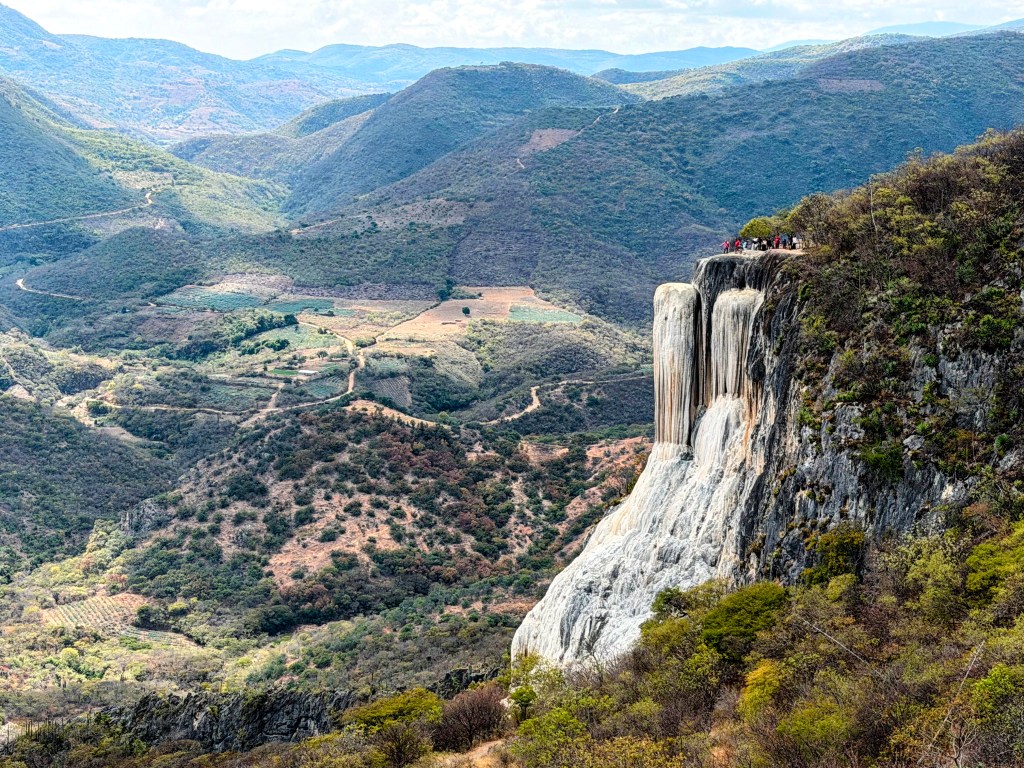 Hierve el Agua is a petrified waterfall formed by mineral springs, mostly comprised of calcium carbonate, running slowly over the edge of the cliffsides. Up top the water has created striation in the ground beneath and small pools to swim in above a sweeping valley view. Oaxaca has great clouds. The site features two large petrified waterfalls, the larger of the two extending over 90 ft down to the valley. While considerably more built up and tourist friendly than I remember it, it remains a remarkable space just striking in its landscape.