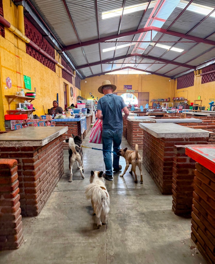 In the meantime, Arturo had gotten back to me with the directions to Daniel’s place near the town center, “up the cliff”. Hmm. We found the centro, collecting a few dog friends on the way, and had a grand old time finding a bathroom. Mom was able to load the map to Huella Carmín and we set off up the hillside in search of the shop.