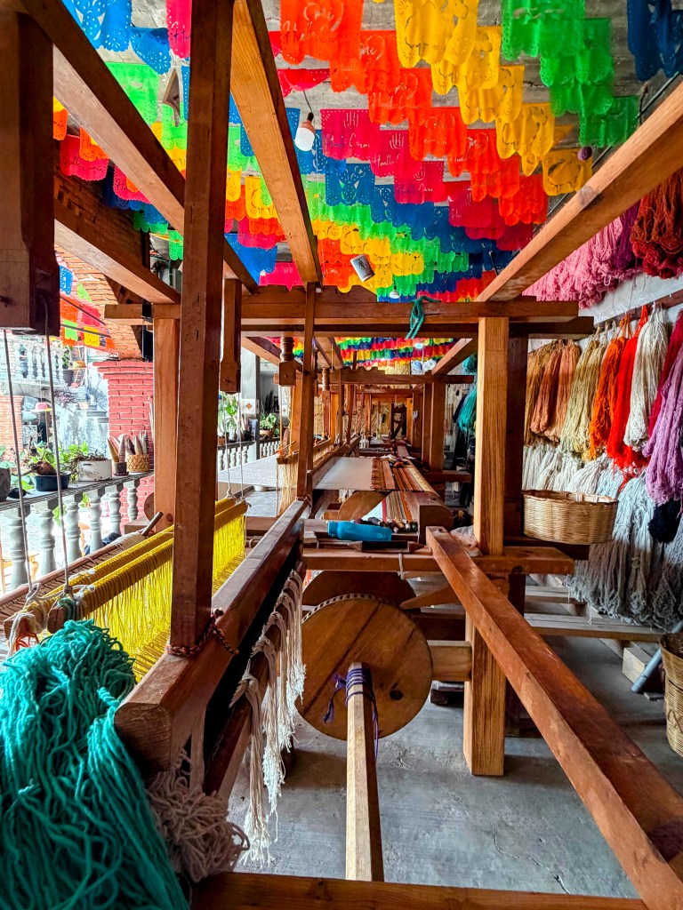 I had been to Teotitlán before as part of a larger tour and remembered being a little frustrated at only going one place and not being able to explore the town, so I’d reached out to set us up a demonstration and thought we could do this one independently. That morning I realized I wasn’t 100% sure I’d fully confirmed, but their website seemed like they offered demonstrations every day at the same time that I thought I booked and I knew the town was full of these types of demonstrations. So we grabbed a taxi for the ride out there, roughly 35 minutes, and then struggled a bit to find the very closed location. Oops. From here a few things happened. 1. We realized we had shit for cell service 2. I managed to send a message to our guide from yesterday who we knew had a weaving friend, and 3. we trudged back up to the main road when I found a kid who gave us a couple recommendations.