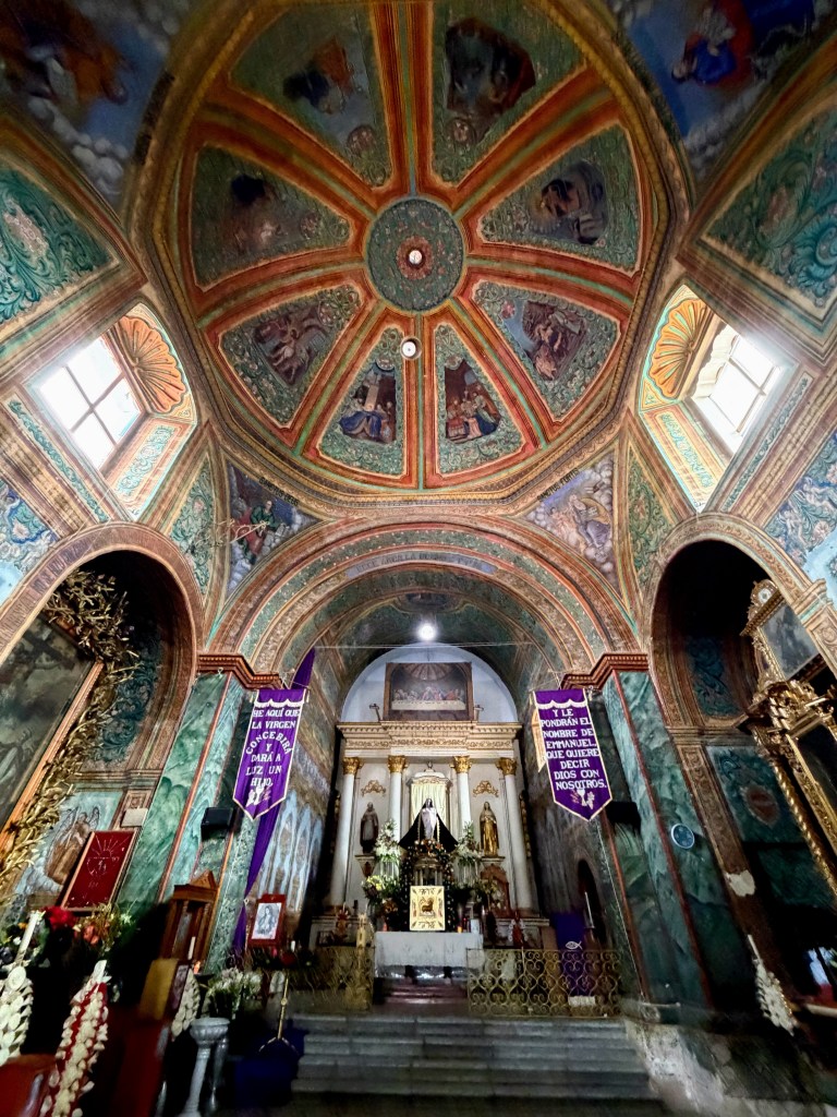 Aftter this very short visit, we took a quick look in Templo Santo Domingo. The church has a complicated history with initial constructiong beginning in 1551, it was finally inaugurated, though still incomplete in 1608. The construction faced several set backs due to a lack of funding, but was finally completed in 1666. During the Mexican independence war the church was used a military camp for both armies at various points. In 1859, after Mexico had gained its indepedence, a series of Reform Laws were enacted that sought to check the power of the Catholic, including one that nationalized large swaths of Catholic property. And Santo Domingo was used for military purposes once again. The church remained closed until 1902 when President Porfirio Diaz returned it to the Church. It’s now both an official monument in Mexico and an Unesco World Heritage site.