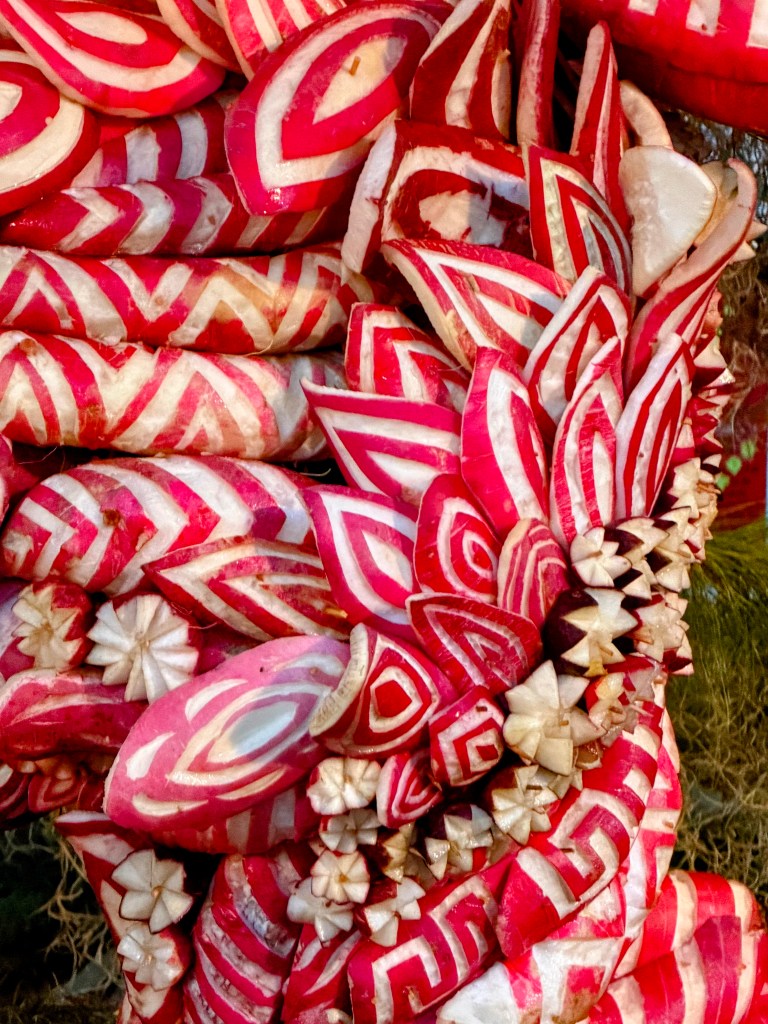 Noche de los Rábanos is unique to Oaxaca and features several levels of competition. These are elaborate scenes built from specially grown radishes, now produced by the state, that are on display and lit up for one night only. And the flock comes to see! It was packed. I will now bombard you with pictures of radishes.