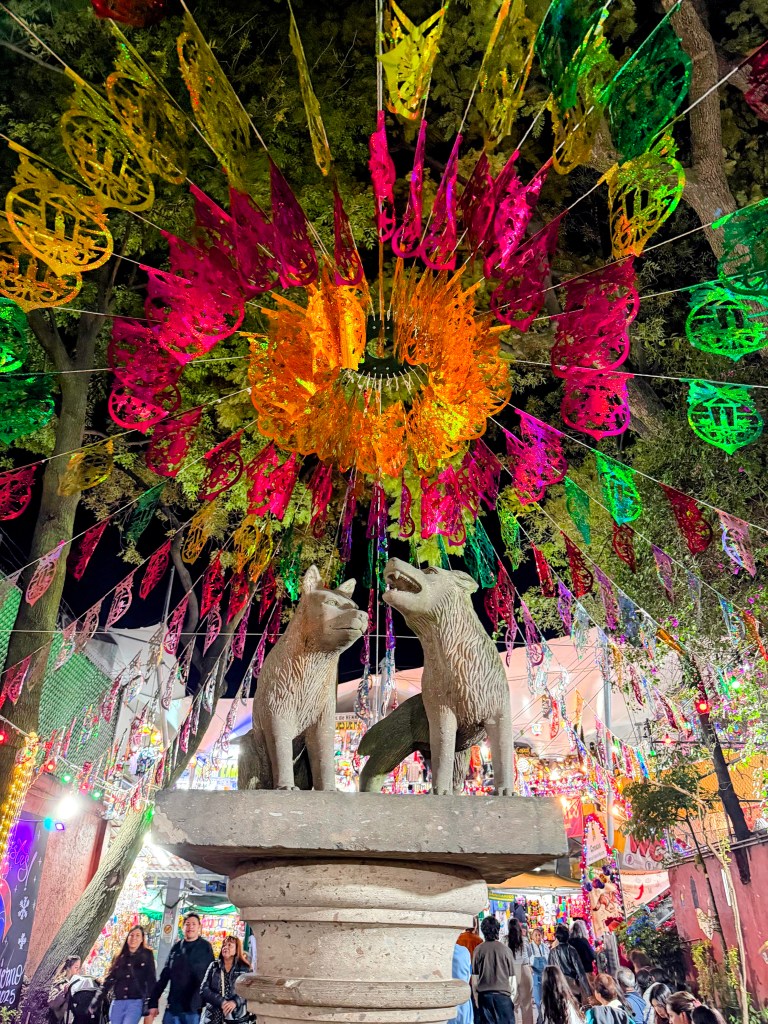 Coyoacan was both still in full Christmas mode and in weekend mode. Vendors crowded the streets, Christmas lights hung everywhere, groups gathered for street performances, kids threw pop its everywhere, and there was a large fake Christmas tree near the church.