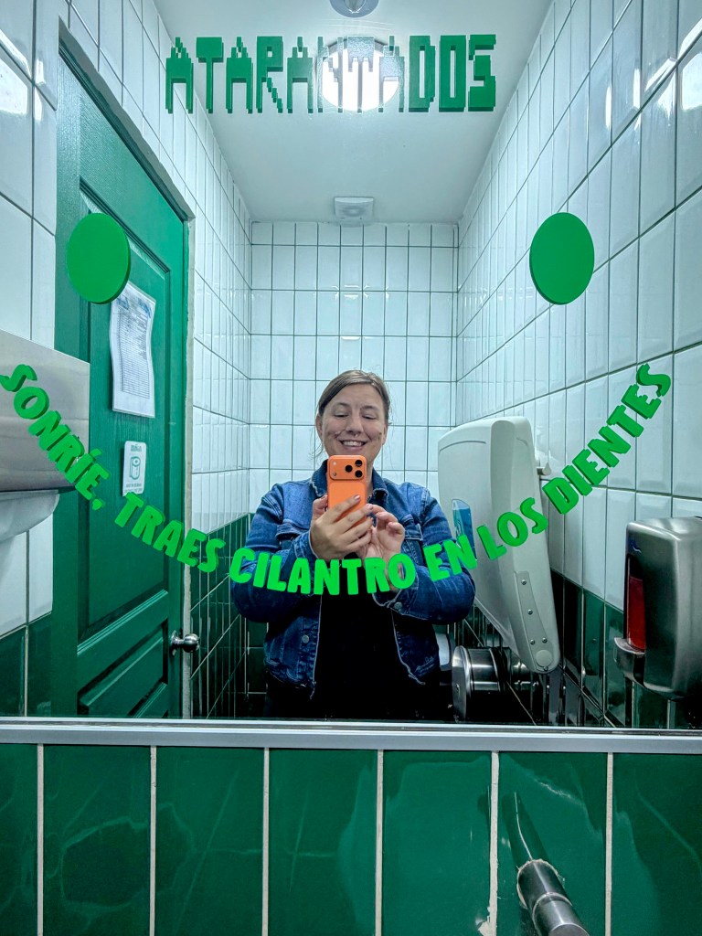Trompo negro is the way to go. Fran and Gus had also ordered fries enchiladas with carne, which were tasty as well. The Volcan carne asada was delish. Fran tells me Katy Perry ate here. And I like the bathroom mirror “Smile, you have cilantro in your teeth”
