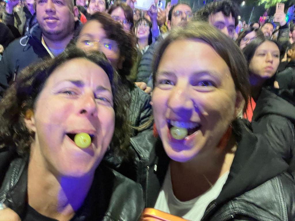 At midnight we all yelled the countdown and streamers and foam exploded over the audience. In Mexico, you eat 12 grapes at midnight for a wish for each month of the year and in true form, someone was handing out grapes, although I think Tess and I only get one wish having only been given 1 grape each.