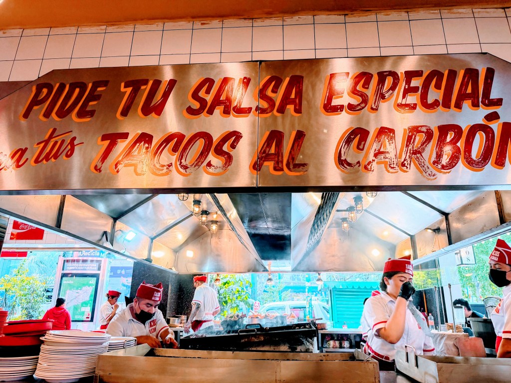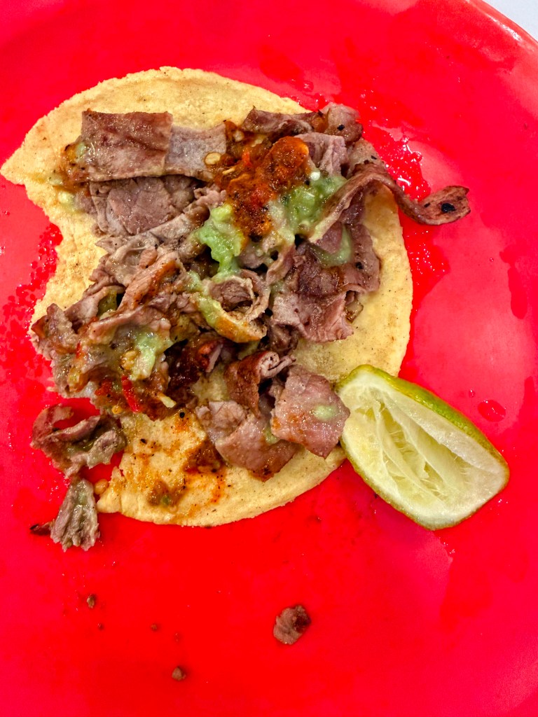 According to Gus, this is a legit old school taqueria. With white tiles, old fridges with 50s coca cola logos displaying soda pop, uniformed staff. And then of course a classic menu, pastor, bistec, suadero, longaniza. I had a couple pastor tacos and the bistec pictured (partially eaten, sorry y’all) below. La Chula has several locations, not all in the super trendy areas and is open 24 hours a day. It’s loud, smoky and inviting with really good tacos.