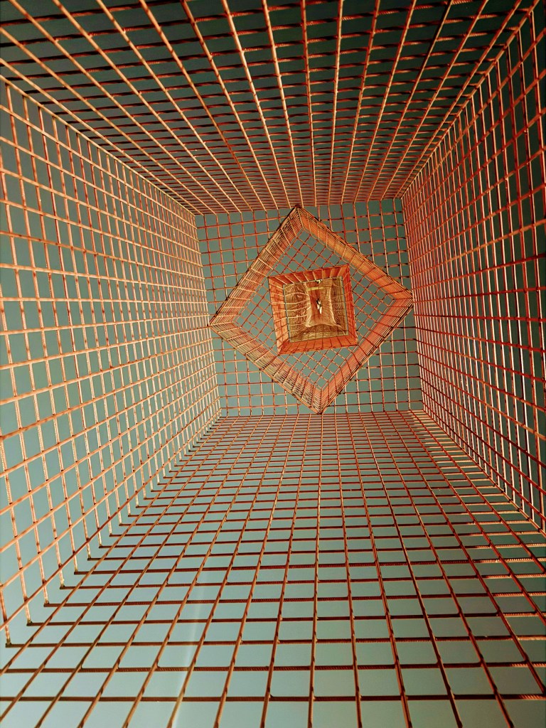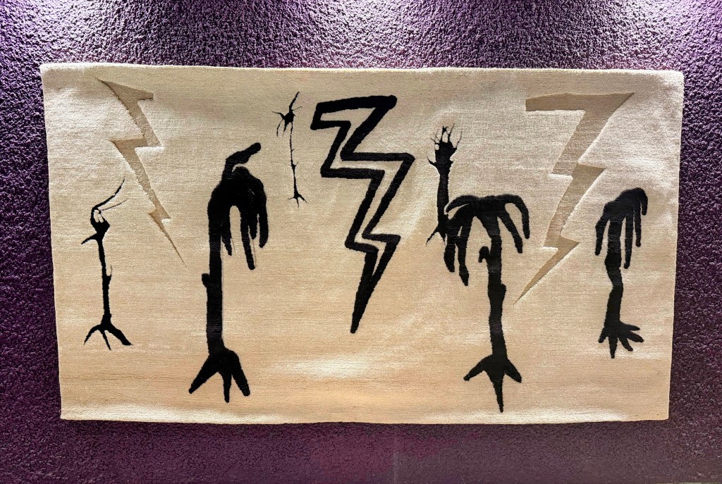 My Wednesday foray into Art Week took me to an exhibit and performance in the Folklore Ballet School, just north of Bellas Artes in the historic center. The building is in brutalist style, a jutting concrete mass with imposing doors and abrupt angles. In contrast, on display they had rugs, mostly in neutral tone, and glasswork, largely cubes in various colors, complexity, and diameter. I always feel somewhat not cool enough for these events and this was no exception. I wandered a bit, using the handy dandy laminated sheet they gave me, whose language reinforced the general sense of not cool enough, but was at least somewhat informative.