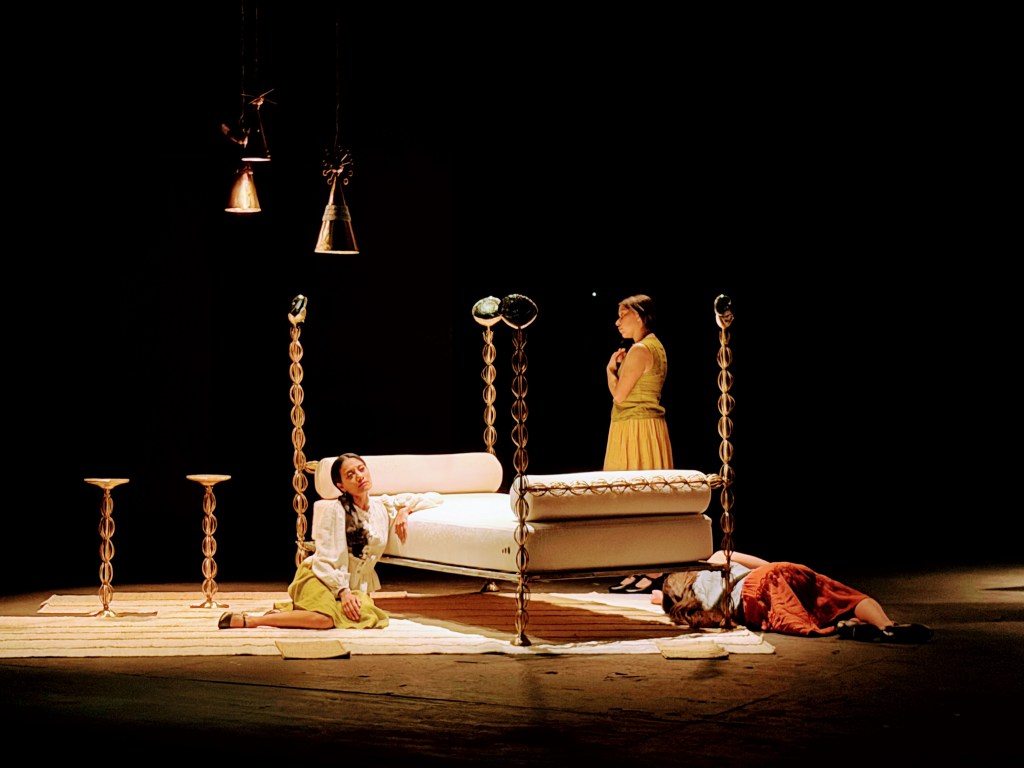 We followed the women and the sound down to the stage below, which was also home to a design set. A woman with a tuba stood in the back row.