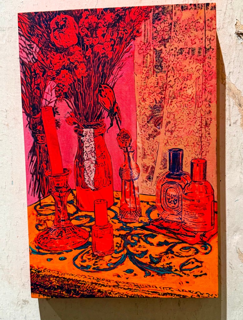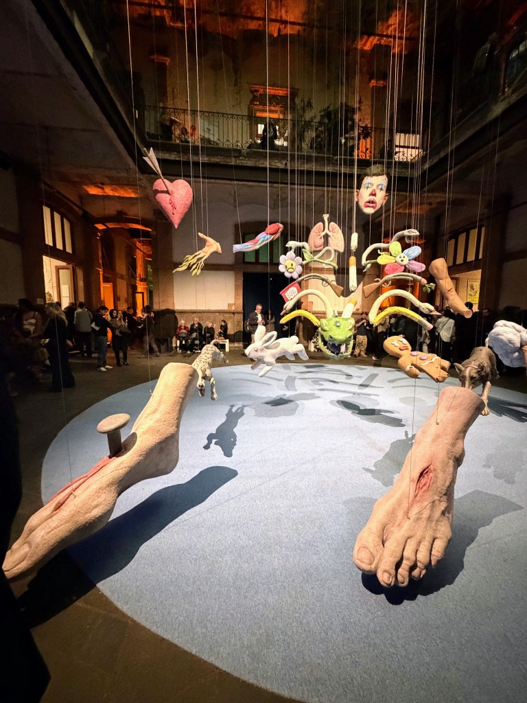 Salon Acme is a huge event space in the Juarez neighborhood that is freakin’ gorgeous. This is a paid entry event and feels a bit museum like. It’s an old colonial building with covered courtyards, viney plants dripping down from above, thick stone banisters and wide staircases that ought to have a red carpet down them. It’s 3 threes and 8 zillion tiny rooms, featuring a small performance space with ballerins, 4 bars, a taco stand, and of course art. And it was extremely crowded. Felt very eventy. Another intereresting choice they made was to (for the most part) include a large list of artist info at the end of each room rather than with each piece.