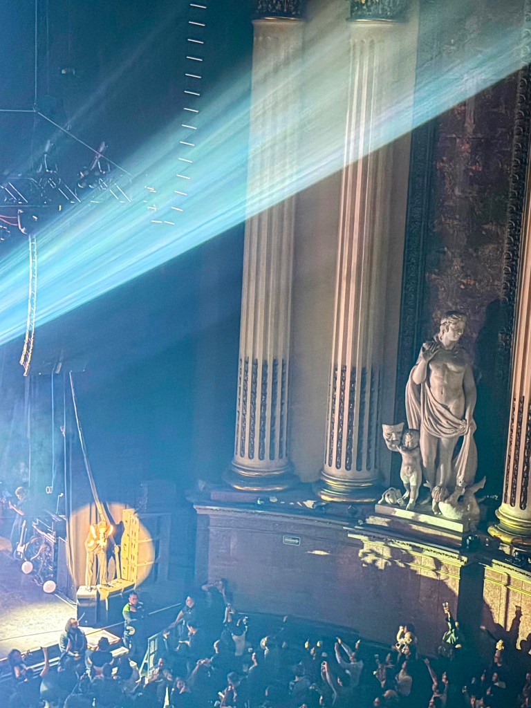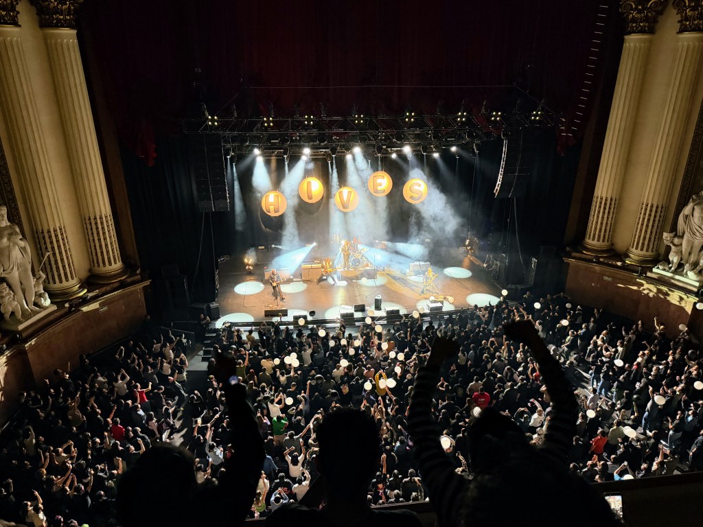 This week Fran & I went to a Hives concert at Teatro Metropolitano, which, it turns out, is a gorgeous building and amazing venue- kinda a la the Schnitz. This is a lead singer who works. Holy crap. This is the bounciest human I’ve ever seen in my life. The band employs what can only be described as a Renaissance Ninja. Dressed in all black, including over his head and mouth, he picks up mic stands, rearranges kicked over monitors, collects flung water bottles, plays interference with balloons, retrieves drumsticks, plays tambourine, and expertly guides the longest mic cable I’ve ever seen as the lead singer climbs over seats in the audience, which he does quite literally about half the songs.