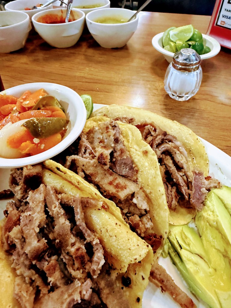 This was a little desperate. My goal had been another place, but they are apparently closed on Sundays. So we wound up here, kitty corner from City Market. Tacos milanesa de res con aguacate. A truly American sized portion of avocado aka disappointing. Milanesa, for the uninitiated, is generally delicious. It’s a very thin piece of meat, commonly beef or chicken, lightly breaded and pan fried to crispy brown perfection.