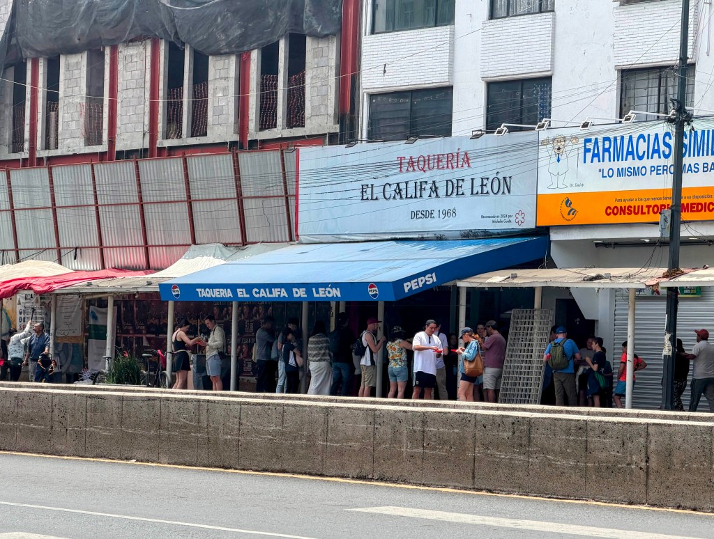 First and foremost it is SMALL. Nestled in a tiny space on the major thoroughfare of Avendia Ribera de San Cosme, it’s not exactly compelling infrastructure. There’s one wall mounted eating counter that could in a pinch fit 4, but for the most people eat standing under the overhang. That mass in that pic, not the line.